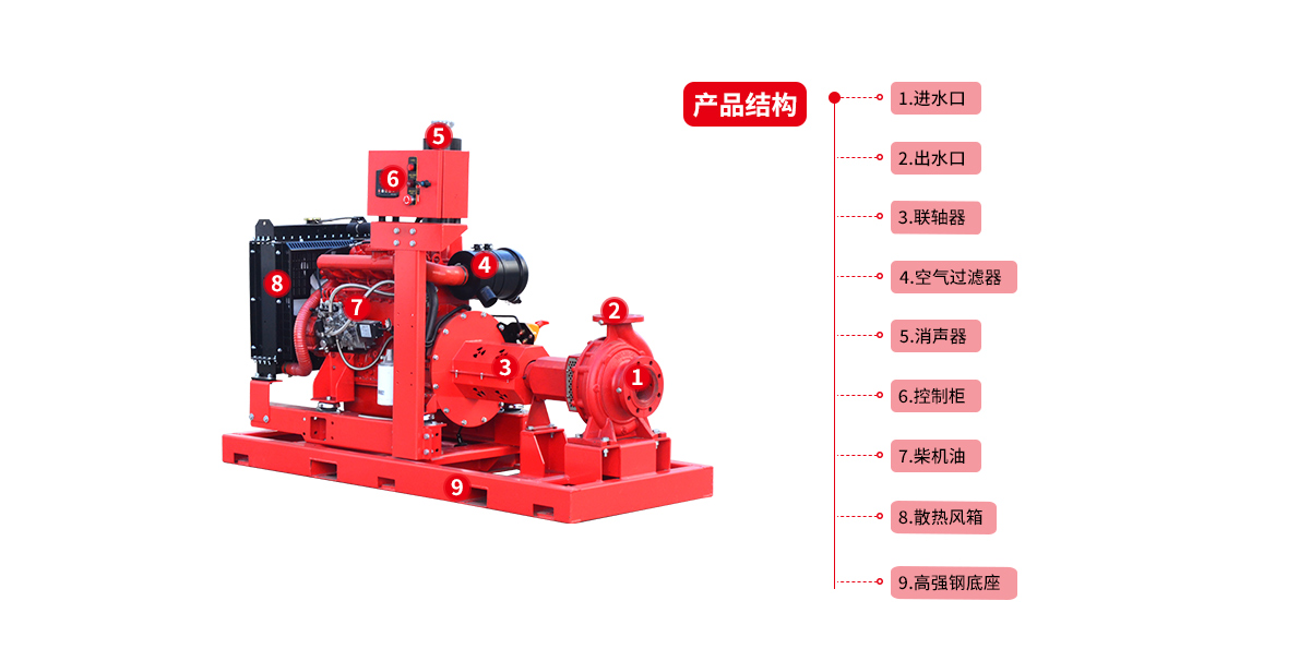 5.直連式:360kw以下柴油水泵機組采用國內(nèi)*的柴油機與水泵通過彈性聯(lián)軸節(jié)直接連接技術(shù),減少了故障點,并使機組的起動時間大大縮短,增加了機組的可靠性和應(yīng)急性能;